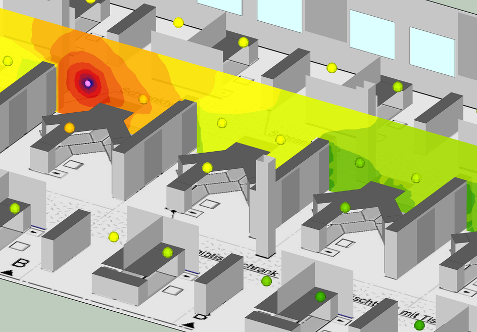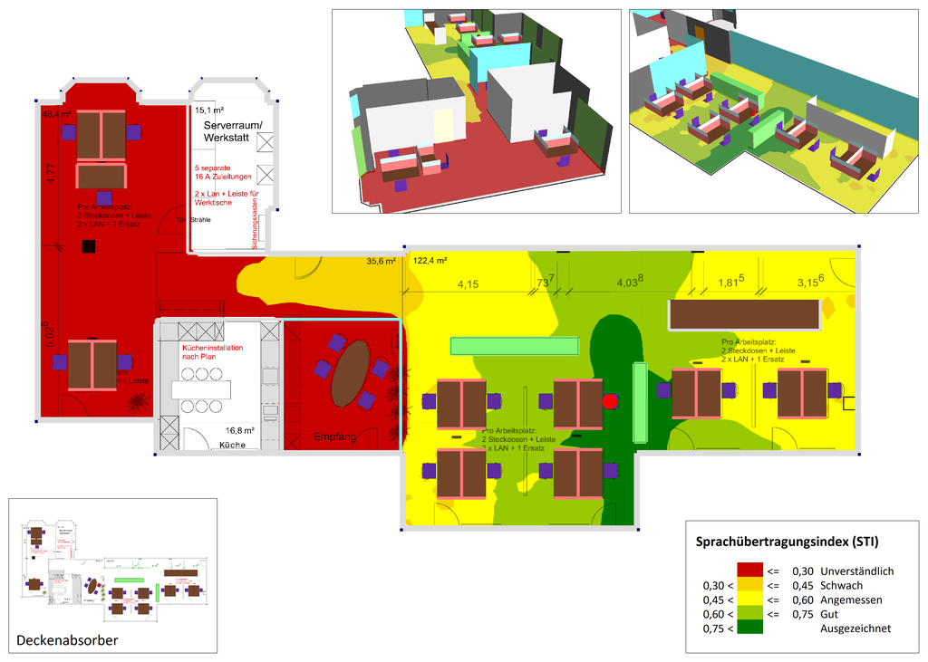 - Schalltechnische Optimierung von Arbeitsplätzen, z.B. in Großraumbüros.