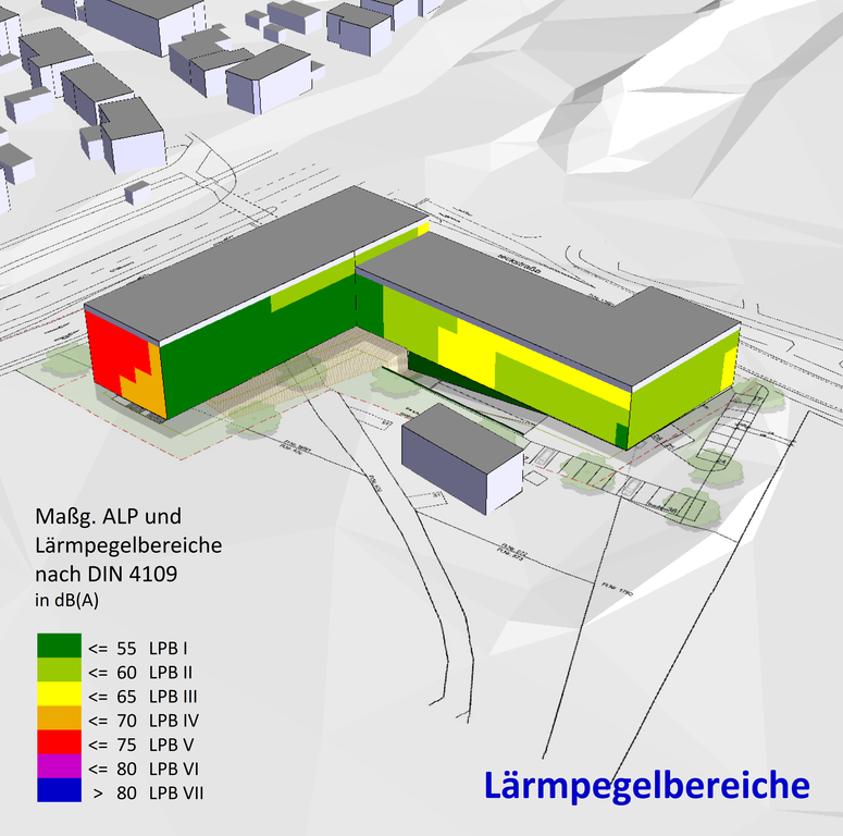 - Gutachten zu Bestand, Neubau, Änderung oder Erweiterung von Betrieben und Anlagen nach TA Lärm mittels rechnerischer Prognose;