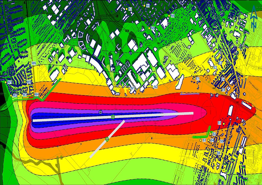 - Definition of noise protection areas according to the law on protection against aircraft noise (FluLärmG);