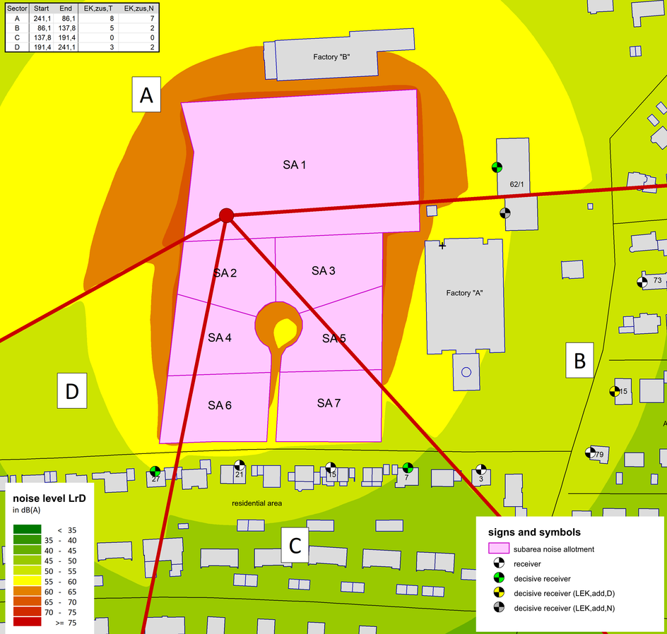 - Noise quota allocation according to DIN 45691 for commercial and industrial sites, if necessary;
