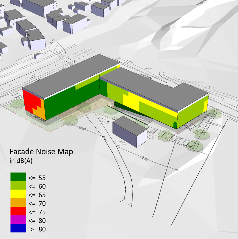 - Expert opinions on existing buildings, new buildings, alterations or extensions of plants and facilities according to TA Lärm by means of computational prognosis;