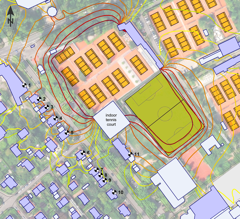 Expert noise reports according to the Sports Facilities Noise Protection Ordinance (18. BImSchV) and the Leisure Time Noise Directive for existing, new or modified sports and leisure facilities and events.