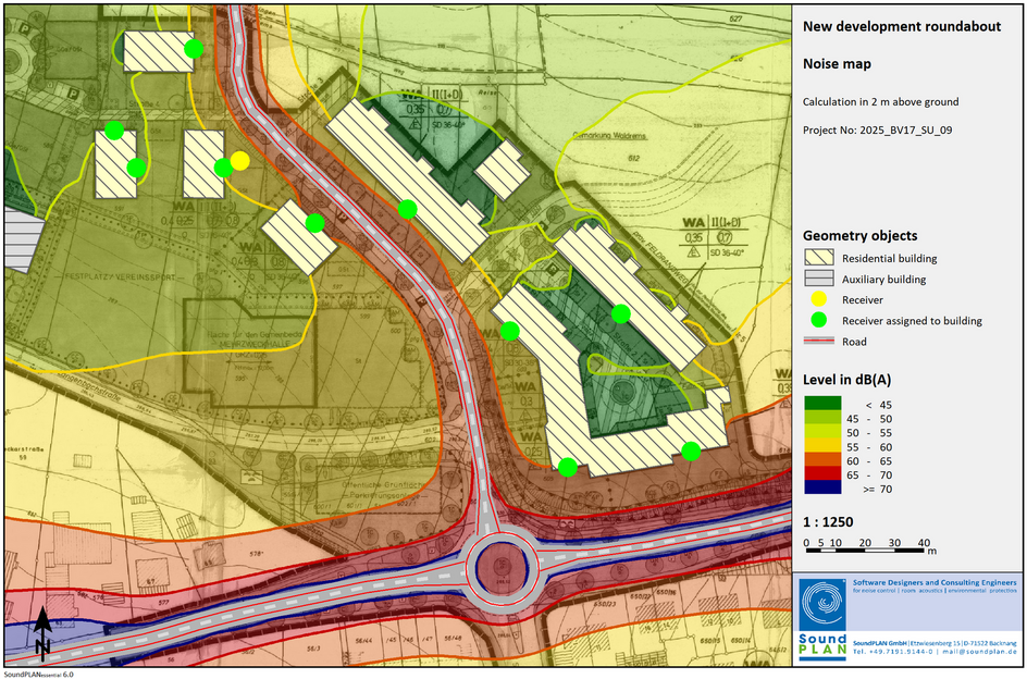 SoundPLANessential has no limits on the number of noise sources, receivers, and obstacles. With the powerful 3D view, data control is a breeze. The reliable SoundPLAN calculation engine ensures ultra-fast calculations thanks to multithreading.